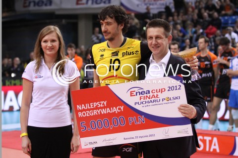 22.01.2012 RZESZOW SIATKOWKA PUCHAR POLSKI 2012 MEN VOLLEYBALL ENEA CUP MEN MECZ FINAL JASTRZEBSKI WEGIEL - PGE SKRA BELCHATOW N/Z NAJLEPSZY ROZGRYWAJACY MIGUEL ANGEL FALASCA I POSEL JAN BURY FOT MACIEJ GOCLON / FOTONEWS
