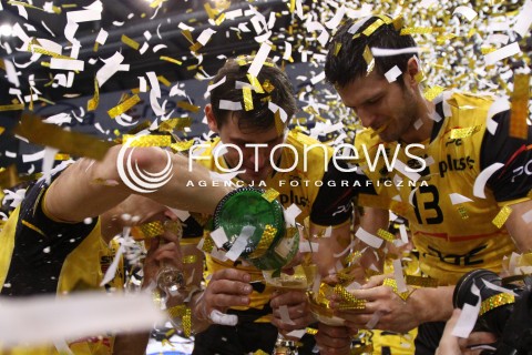 22.01.2012 RZESZOW SIATKOWKA PUCHAR POLSKI 2012 MEN VOLLEYBALL ENEA CUP MEN MECZ FINAL JASTRZEBSKI WEGIEL - PGE SKRA BELCHATOW N/Z RADOSC SZAMPAN PUCHAR DANIEL PLINSKI MICHAL WINIARSKI FOT MACIEJ GOCLON / FOTONEWS