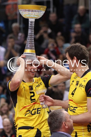 22.01.2012 RZESZOW SIATKOWKA PUCHAR POLSKI 2012 MEN VOLLEYBALL ENEA CUP MEN MECZ FINAL JASTRZEBSKI WEGIEL - PGE SKRA BELCHATOW N/Z RADOSC WYGRANA PUCHAR MARIUSZ WLAZLY DANIEL PLINSKI FOT MACIEJ GOCLON / FOTONEWS