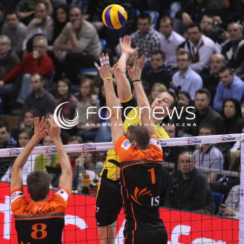 22.01.2012 RZESZOW SIATKOWKA PUCHAR POLSKI 2012 MEN VOLLEYBALL ENEA CUP MEN MECZ FINAL JASTRZEBSKI WEGIEL - PGE SKRA BELCHATOW N/Z ATAK BARTOSZ KUREK BLOK MICHAL LASKO LUKASZ POLANSKI FOT MACIEJ GOCLON / FOTONEWS
