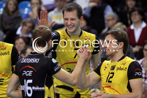 22.01.2012 RZESZOW SIATKOWKA PUCHAR POLSKI 2012 MEN VOLLEYBALL ENEA CUP MEN MECZ FINAL JASTRZEBSKI WEGIEL - PGE SKRA BELCHATOW N/Z RADOSC WYGRANA BARTOSZ KUREK PAWEL ZATORSKI PAWEL WOICKI FOT MACIEJ GOCLON / FOTONEWS