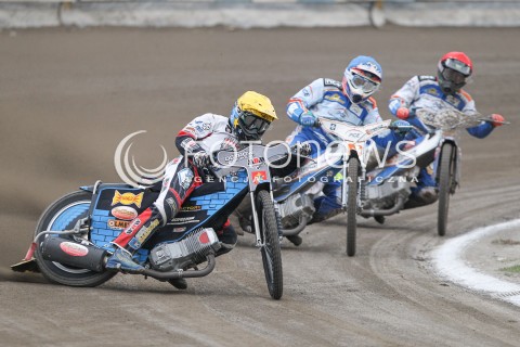 N/Z BIEG NR 1: MATEUSZ SZCZEPANIAK (ZOLTY), GREG HANCOCK (CZERWONY), KAROL BARAN (NIEBIESKI)