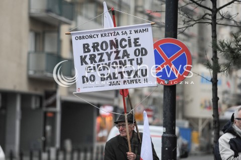 N/Z NAPIS TRANSPARENT BRONCIE KRZYZA OD GIEWONTU DO BALTYKU PROTEST POD SEJMEM OBRONCY KRZYZA