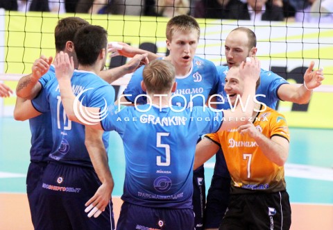 28.03.2012 RZESZOW SIATKOWKA PUCHAR CEV FINAL 2012 MEN 2011/2012 CEV VOLLEYBALL CUP MEN MECZ ASSECO RESOVIA RZESZOW - DYNAMO MOSKWA N/Z RADOSC SIATKARZY DYNAMO MOSKWA FOT MACIEJ GOCLON / FOTONEWS