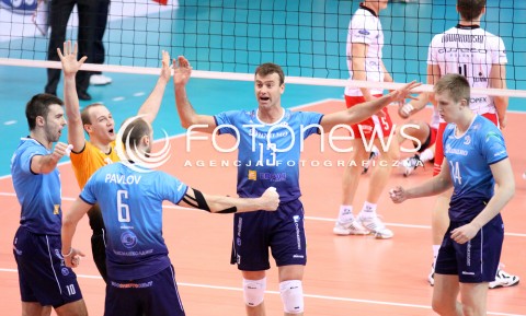 28.03.2012 RZESZOW SIATKOWKA PUCHAR CEV FINAL 2012 MEN 2011/2012 CEV VOLLEYBALL CUP MEN MECZ ASSECO RESOVIA RZESZOW - DYNAMO MOSKWA N/Z RADOSC SIATKARZY DYNAMO MOSKWA FOT MACIEJ GOCLON / FOTONEWS
