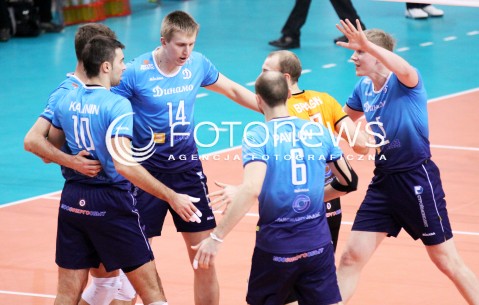 28.03.2012 RZESZOW SIATKOWKA PUCHAR CEV FINAL 2012 MEN 2011/2012 CEV VOLLEYBALL CUP MEN MECZ ASSECO RESOVIA RZESZOW - DYNAMO MOSKWA N/Z RADOSC SIATKARZY DYNAMO MOSKWA FOT MACIEJ GOCLON / FOTONEWS