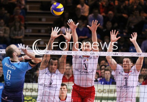 28.03.2012 RZESZOW SIATKOWKA PUCHAR CEV FINAL 2012 MEN 2011/2012 CEV VOLLEYBALL CUP MEN MECZ ASSECO RESOVIA RZESZOW - DYNAMO MOSKWA N/Z NIKOLAY PAVLOV GYORGY GROZER WOJCIECH GRZYB OLIEG ACHREM FOT MACIEJ GOCLON / FOTONEWS