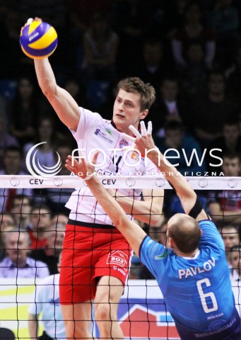 28.03.2012 RZESZOW SIATKOWKA PUCHAR CEV FINAL 2012 MEN 2011/2012 CEV VOLLEYBALL CUP MEN MECZ ASSECO RESOVIA RZESZOW - DYNAMO MOSKWA N/Z PIOTR NOWAKOWSKI NIKOLAY PAVLOV FOT MACIEJ GOCLON / FOTONEWS