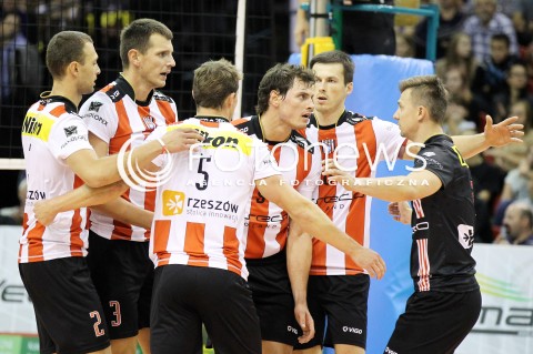 14.09.2012 KROSNO SIATKOWKA V TURNIEJ O PUCHAR PREZYDENTA MIASTA KROSNA MECZ ASSECO RESOVIA RZESZOW - LOTOS TREFL GDANSK N/Z WOJCIECH GRZYB KRZYSZTOF IGNACZAK LUKAS TICHACEK RAFAL BUSZEK PAUL LOTMAN RADOSC SIATKARZY ASSECO RESOVIA FOT MACIEJ GOCLON / FOTONEWS