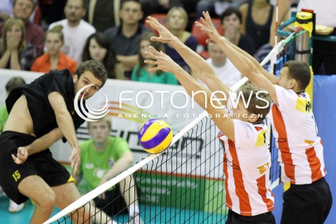 14.09.2012 KROSNO SIATKOWKA V TURNIEJ O PUCHAR PREZYDENTA MIASTA KROSNA MECZ ASSECO RESOVIA RZESZOW - LOTOS TREFL GDANSK N/Z MATEUSZ MIKA PIOTR NOWAKOWSKI PAUL LOTMAN FOT MACIEJ GOCLON / FOTONEWS