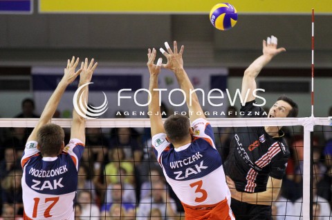 15.09.2012 KROSNO SIATKOWKA V TURNIEJ O PUCHAR PREZYDENTA MIASTA KROSNA MECZ ASSECO RESOVIA RZESZOW - ZAKSA KEDZIERZYN KOZLE N/Z RAFAL BUSZEK DOMINIK WITCZAK MARCIN MOZDZONEK FOT MACIEJ GOCLON / FOTONEWS