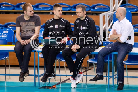 12.04.2013 RZESZOW SIATKOWKA PLUSLIGA TRENING SIATKARZY ASSECO RESOVIA PRZED FINALEM PLUSLIGI N/Z TRENING BARTOSZ GORSKI ANDRZEJ KOWAL TRENER MIESZKO GOGOL STATYSTYK TOMASZ KOZLOWSKI FOT MACIEJ GOCLON / FOTONEWS