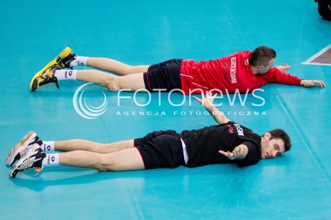 12.04.2013 RZESZOW SIATKOWKA PLUSLIGA TRENING SIATKARZY ASSECO RESOVIA PRZED FINALEM PLUSLIGI N/Z TRENING GRZEGORZ KOSOK PAUL LOTMAN FOT MACIEJ GOCLON / FOTONEWS