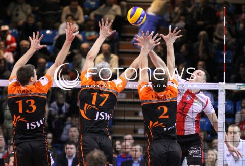 02.03.2012 RZESZOW SIATKOWKA PLUS LIGA 2011/2012 MEN VOLLEYBALL POLAND POLISH PLUSLIGA LEAGUE SEASON 2011/2012 MECZ ASSECO RESOVIA RZESZOW - JSW JASTRZEBSKI WEGIEL N/Z ATAK OLIEG ACHREM BLOK MICHAL KUBIAK ROB BONTJE RAPHAEL MARGARIGO VINHEDO FOT MACIEJ GOCLON / FOTONEWS