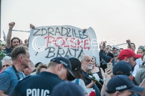 N/Z UCZESTNICY KONTRMANIFESTACJI W KAJDANKACH TRZYMAJACY BANER
