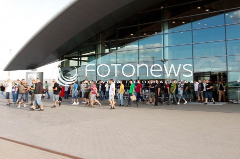 22.07.2012 LOTNISKO JASIONKA ZUZEL SPEEDWAY EKSTRALIGA PRZYLOT SAMOLOTEM KIBICOW STELMET FALUBAZ ZIELONA GORA NA MECZ DO RZESZOWA MIMO ZAKAZU. N/Z KIBICE PRZED TERMINALEM FOT MACIEJ GOCLON / FOTONEWS