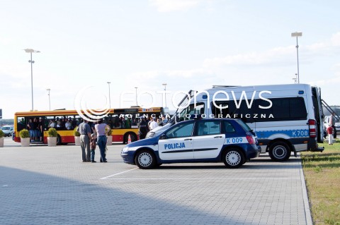 22.07.2012 LOTNISKO JASIONKA ZUZEL SPEEDWAY EKSTRALIGA PRZYLOT SAMOLOTEM KIBICOW STELMET FALUBAZ ZIELONA GORA NA MECZ DO RZESZOWA MIMO ZAKAZU. N/Z KIBICE PRZED TERMINALEM FOT MACIEJ GOCLON / FOTONEWS