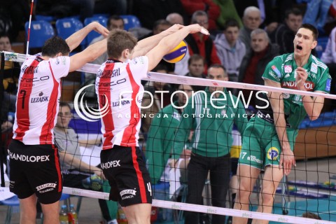 07.01.2012 RZESZOW SIATKOWKA PUCHAR POLSKI 2012 MEN VOLLEYBALL ENEA CUP MEN MECZ ASSECO RESOVIA RZESZOW - INDYKPOL AZS OLSZTYN N/Z ATAK BARTOSZ KRZYSIEK BLOK OLIEG ACHREM PIOTR NOWAKOWSKI FOT MACIEJ GOCLON / FOTONEWS
