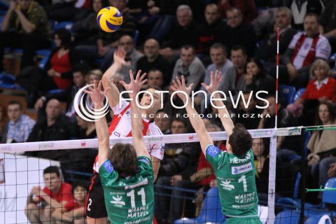 07.01.2012 RZESZOW SIATKOWKA PUCHAR POLSKI 2012 MEN VOLLEYBALL ENEA CUP MEN MECZ ASSECO RESOVIA RZESZOW - INDYKPOL AZS OLSZTYN N/Z ATAK PAUL LOTMAN BLOK GUILLERMO HERNAN LUKASZ KADZIEWICZ FOT MACIEJ GOCLON / FOTONEWS