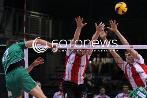 07.01.2012 RZESZOW SIATKOWKA PUCHAR POLSKI 2012 MEN VOLLEYBALL ENEA CUP MEN MECZ ASSECO RESOVIA RZESZOW - INDYKPOL AZS OLSZTYN N/Z ATAK BARTOSZ KRZYSIEK BLOK ADRIAN GONTARIU PIOTR NOWAKOWSKI FOT MACIEJ GOCLON / FOTONEWS