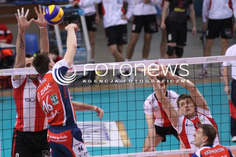 04.02.2012 RZESZOW SIATKOWKA PLUS LIGA 2011/2012 MEN VOLLEYBALL POLAND POLISH PLUSLIGA LEAGUE SEASON 2011/2012 MECZ ASSECO RESOVIA RZESZOW - ZAKSA KEDZIERZYN KOZLE N/Z ATAK MICHAL RUCIAK BLOK GYORGY GROZER PIOTR NOWAKOWSKI FOT MACIEJ GOCLON / FOTONEWS