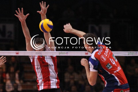 04.02.2012 RZESZOW SIATKOWKA PLUS LIGA 2011/2012 MEN VOLLEYBALL POLAND POLISH PLUSLIGA LEAGUE SEASON 2011/2012 MECZ ASSECO RESOVIA RZESZOW - ZAKSA KEDZIERZYN KOZLE N/Z ATAK ANTONIN ROUZIER BLOK MARKO BOJIC FOT MACIEJ GOCLON / FOTONEWS