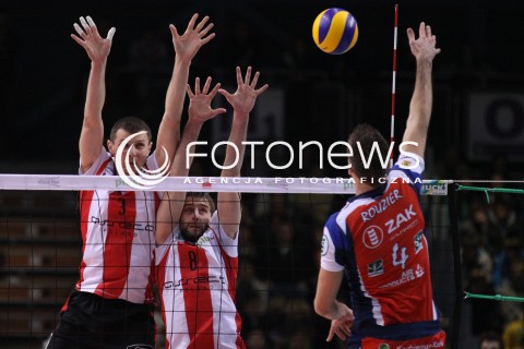 04.02.2012 RZESZOW SIATKOWKA PLUS LIGA 2011/2012 MEN VOLLEYBALL POLAND POLISH PLUSLIGA LEAGUE SEASON 2011/2012 MECZ ASSECO RESOVIA RZESZOW - ZAKSA KEDZIERZYN KOZLE N/Z ATAK ANTONIN ROUZIER BLOK WOJCIECH GRZYB MARKO BOJIC FOT MACIEJ GOCLON / FOTONEWS