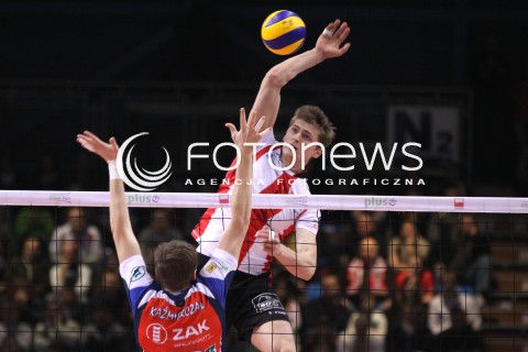 04.02.2012 RZESZOW SIATKOWKA PLUS LIGA 2011/2012 MEN VOLLEYBALL POLAND POLISH PLUSLIGA LEAGUE SEASON 2011/2012 MECZ ASSECO RESOVIA RZESZOW - ZAKSA KEDZIERZYN KOZLE N/Z ATAK PIOTR NOWAKOWSKI BLOK WOJCIECH KAZMIERCZAK FOT MACIEJ GOCLON / FOTONEWS