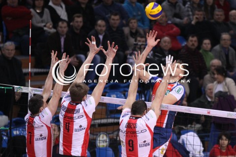 04.02.2012 RZESZOW SIATKOWKA PLUS LIGA 2011/2012 MEN VOLLEYBALL POLAND POLISH PLUSLIGA LEAGUE SEASON 2011/2012 MECZ ASSECO RESOVIA RZESZOW - ZAKSA KEDZIERZYN KOZLE N/Z ATAK ANTONIN ROUZIER BLOK OLIEG ACHREM PIOTR NOWAKOWSKI GYORGY GROZER FOT MACIEJ GOCLON / FOTONEWS
