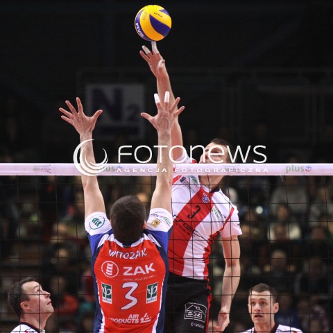 04.02.2012 RZESZOW SIATKOWKA PLUS LIGA 2011/2012 MEN VOLLEYBALL POLAND POLISH PLUSLIGA LEAGUE SEASON 2011/2012 MECZ ASSECO RESOVIA RZESZOW - ZAKSA KEDZIERZYN KOZLE N/Z ATAK WOJCIECH GRZYB BLOK DOMINIK WITCZAK FOT MACIEJ GOCLON / FOTONEWS