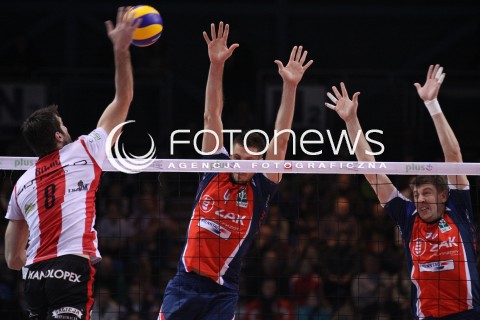 04.02.2012 RZESZOW SIATKOWKA PLUS LIGA 2011/2012 MEN VOLLEYBALL POLAND POLISH PLUSLIGA LEAGUE SEASON 2011/2012 MECZ ASSECO RESOVIA RZESZOW - ZAKSA KEDZIERZYN KOZLE N/Z ATAK MARKO BOJIC BLOK WOJCIECH KAZMIERCZAK ANTONIN ROUZIER FOT MACIEJ GOCLON / FOTONEWS