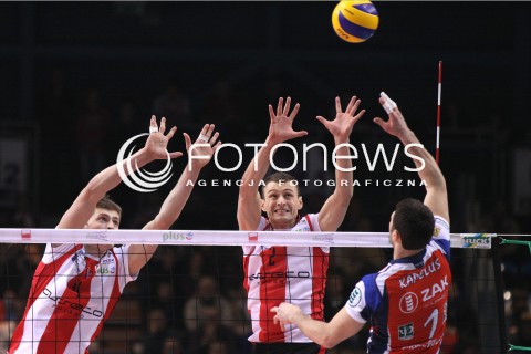 04.02.2012 RZESZOW SIATKOWKA PLUS LIGA 2011/2012 MEN VOLLEYBALL POLAND POLISH PLUSLIGA LEAGUE SEASON 2011/2012 MECZ ASSECO RESOVIA RZESZOW - ZAKSA KEDZIERZYN KOZLE N/Z ATAK SERGIEJ KAPELUS BLOK PAUL LOTMAN PIOTR NOWAKOWSKI FOT MACIEJ GOCLON / FOTONEWS