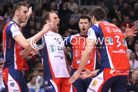 04.02.2012 RZESZOW SIATKOWKA PLUS LIGA 2011/2012 MEN VOLLEYBALL POLAND POLISH PLUSLIGA LEAGUE SEASON 2011/2012 MECZ ASSECO RESOVIA RZESZOW - ZAKSA KEDZIERZYN KOZLE N/Z RADOSC SIATKARZY ZAKSA KEDZIERZYN KOZLE SERGIEJ KAPELUS PIOTR GACEK FOT MACIEJ GOCLON / FOTONEWS