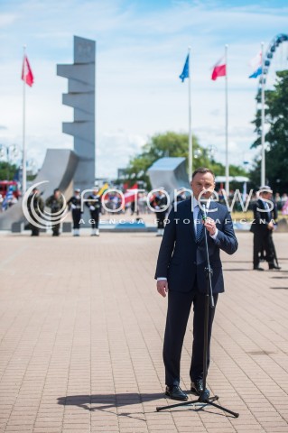N/Z PREZYDENT RP ANDRZEJ DUDA NA TLE POMNIKA POLSKI MORSKIEJ