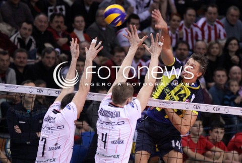08.02.2012 RZESZOW SIATKOWKA PUCHAR CEV CHALLENGE ROUND 2012 MEN 2011/2012 CEV VOLLEYBALL CUP MEN MECZ ASSECO RESOVIA RZESZOW - FENERBAHCE GRUNDIG STAMBUL N/Z ATAK IVAN MILJKOVIC BLOK OLIEG ACHREM PIOTR NOWAKOWSKI FOT MACIEJ GOCLON / FOTONEWS