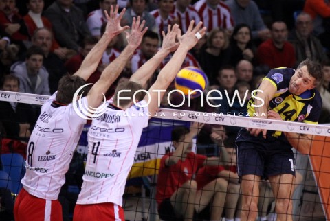 08.02.2012 RZESZOW SIATKOWKA PUCHAR CEV CHALLENGE ROUND 2012 MEN 2011/2012 CEV VOLLEYBALL CUP MEN MECZ ASSECO RESOVIA RZESZOW - FENERBAHCE GRUNDIG STAMBUL N/Z ATAK IVAN MILJKOVIC BLOK MARKO BOJIC PIOTR NOWAKOWSKI FOT MACIEJ GOCLON / FOTONEWS