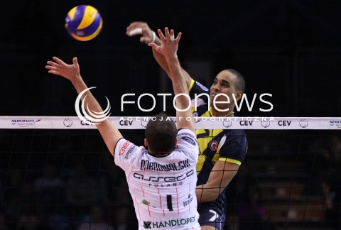 08.02.2012 RZESZOW SIATKOWKA PUCHAR CEV CHALLENGE ROUND 2012 MEN 2011/2012 CEV VOLLEYBALL CUP MEN MECZ ASSECO RESOVIA RZESZOW - FENERBAHCE GRUNDIG STAMBUL N/Z ATAK LEONEL MARSHALL BLOK MACIEJ DOBROWOLSKI FOT MACIEJ GOCLON / FOTONEWS