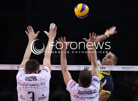 08.02.2012 RZESZOW SIATKOWKA PUCHAR CEV CHALLENGE ROUND 2012 MEN 2011/2012 CEV VOLLEYBALL CUP MEN MECZ ASSECO RESOVIA RZESZOW - FENERBAHCE GRUNDIG STAMBUL N/Z ATAK LEONEL MARSHALL BLOK WOJCIECH GRZYB MACIEJ DOBROWOLSKI FOT MACIEJ GOCLON / FOTONEWS