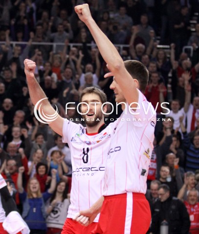 08.02.2012 RZESZOW SIATKOWKA PUCHAR CEV CHALLENGE ROUND 2012 MEN 2011/2012 CEV VOLLEYBALL CUP MEN MECZ ASSECO RESOVIA RZESZOW - FENERBAHCE GRUNDIG STAMBUL N/Z RADOSC WYGRANA MARKO BOJIC WOJCIECH GRZYB FOT MACIEJ GOCLON / FOTONEWS