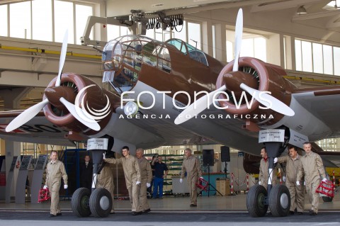 29.09.2012 MIELEC UROCZYSTE ODSLONIECIE MODELU SYLWETKOWEGO LEGENDARNEGO POLSKIEGO BOMBOWCA PZL-37 LOS KTORY ZOSTAL ZBUDOWANY PRZEZ PRACOWNIKOW PZL MIELEC. WYPRODUKOWANE ZOSTALO 120 SAMOLOTOW, DO TEJ PORY NIE ZACHOWALA SIE ANI JEDNA MASZYNA. N/Z OTWARCIE HANGARU Z SAMOLOTEM FOT MACIEJ GOCLON / FOTONEWS