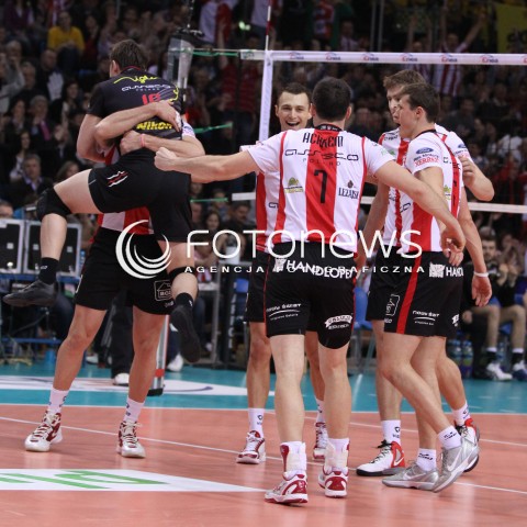 21.01.2012 RZESZOW SIATKOWKA PUCHAR POLSKI 2012 MEN VOLLEYBALL ENEA CUP MEN MECZ POLFINAL SEMIFINAL ASSECO RESOVIA - PGE SKRA BELCHATOW N/Z RADOSC SIATKARZY ASSECO RESOVIA FOT MACIEJ GOCLON / FOTONEWS