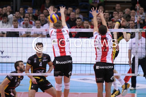 12.10.2011 RZESZOW SIATKOWKA PLUS LIGA 2011/2012 MEN VOLLEYBALL POLAND POLISH PLUSLIGA LEAGUE SEASON 2011/2012 MECZ ASSECO RESOVIA RZESZOW - PGE SKRA BELCHATOW N/Z ATAK CUPKOVIC BLOK PERLOWSKI LOTMAN FOT MACIEJ GOCLON / FOTONEWS