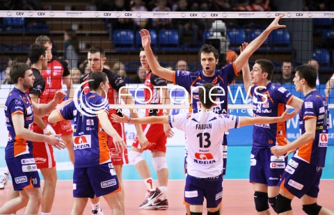 14.03.2012 RZESZOW SIATKOWKA PUCHAR CEV POLFINAL 2012 MEN 2011/2012 CEV VOLLEYBALL CUP MEN MECZ ASSECO RESOVIA RZESZOW - ACH VOLLEY LUBLANA N/Z RADOSC SIATKARZY ACH VOLLEY LUBLANA FOT MACIEJ GOCLON / FOTONEWS