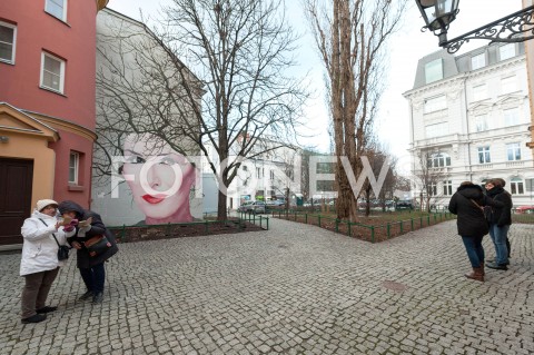 MURAL UPAMIETNIAJACY KORE JACKOWSKA NA SCIANIE JEDNEGO Z BUDYNKOW PRZY ULICY NOWY SWIAT W WARSZAWIE
