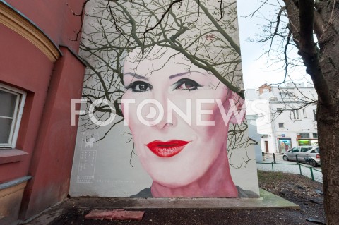 MURAL UPAMIETNIAJACY KORE JACKOWSKA NA SCIANIE JEDNEGO Z BUDYNKOW PRZY ULICY NOWY SWIAT W WARSZAWIE