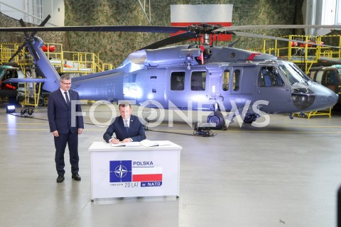 Contract signing ceremony for purchase of four Black Hawk helicopters for the Polish Armed Forces at the Polskie Zaklady Lotnicze in Mielec, Poland.