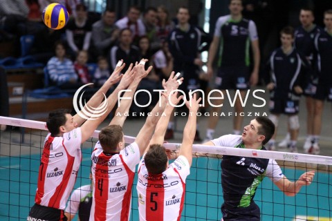 19.02.2012 RZESZOW SIATKOWKA PLUS LIGA 2011/2012 MEN VOLLEYBALL POLAND POLISH PLUSLIGA LEAGUE SEASON 2011/2012 MECZ ASSECO RESOVIA RZESZOW - AZS POLITECHNIKA WARSZAWSKA N/Z ATAK WOJCIECH ZALINSKI BLOK PIOTR NOWAKOWSKI OLIEG ACHREM LUKAS TICHACEK FOT MACIEJ GOCLON / FOTONEWS