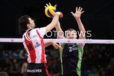 19.02.2012 RZESZOW SIATKOWKA PLUS LIGA 2011/2012 MEN VOLLEYBALL POLAND POLISH PLUSLIGA LEAGUE SEASON 2011/2012 MECZ ASSECO RESOVIA RZESZOW - AZS POLITECHNIKA WARSZAWSKA N/Z ATAK GRZEGORZ KOSOK BLOK ARDO KREEK FOT MACIEJ GOCLON / FOTONEWS