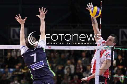 19.02.2012 RZESZOW SIATKOWKA PLUS LIGA 2011/2012 MEN VOLLEYBALL POLAND POLISH PLUSLIGA LEAGUE SEASON 2011/2012 MECZ ASSECO RESOVIA RZESZOW - AZS POLITECHNIKA WARSZAWSKA N/Z ATAK GYORGY GROZER BLOK MATEUSZ GORZKIEWICZ FOT MACIEJ GOCLON / FOTONEWS