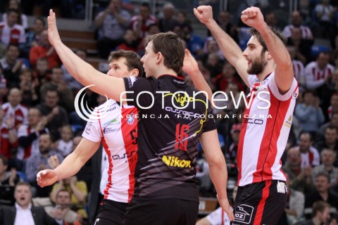19.02.2012 RZESZOW SIATKOWKA PLUS LIGA 2011/2012 MEN VOLLEYBALL POLAND POLISH PLUSLIGA LEAGUE SEASON 2011/2012 MECZ ASSECO RESOVIA RZESZOW - AZS POLITECHNIKA WARSZAWSKA N/Z RADOSC SIATKARZY ASSECO RESOVIA MARKO BOJIC KRZYSZTOF IGNACZAK LUKASZ TICHACEK FOT MACIEJ GOCLON / FOTONEWS